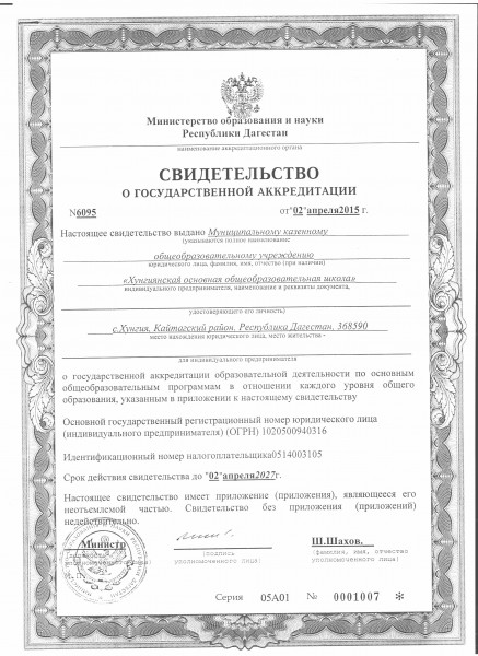 | Полное наименование образовательной организации* | Муниципальное казенное общеобразовательное учреждение "Хунгиянская основная общеобразовательная школа" |